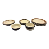 Servisdelar från Arabia Finland, serien Karelia. Klassisk nordisk design i tåligt stengods. Märkta Arabia Finland Karelia – Dishwasher-proof.