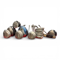 Större parti begagnade golfklubbor bestående av en blandning av drivers, fairwaywoods, järnklubbor och wedges från olika tillverkare och modeller. Perfekt för dig som vill komplettera en golfbag, ha reservklubbor, träna eller sälja vidare styckvis.