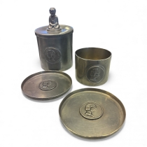 Tillverkade i borstat tenn med stilren formgivning och klassisk fot, perfekt för servering eller som dekorativa samlarobjekt.