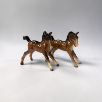 Två porslinsfigurer föreställande föl. Märkta Beswick, England. Tillverkade under 1900-talets mitt. Utförda i bruna toner med ljusa ben.