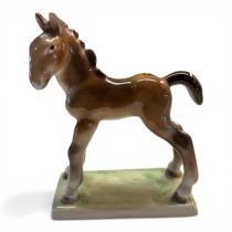 Porslinsfigur föreställande föl. Märkt Sylvac Ware, Made in England. Tillverkad i England under 1900-talets mitt. Glaserad i bruna toner med mjukt modellerad form, typisk för tillverkaren.