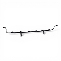 Lång smidd ljusstake i järn med tydlig inspiration från vikingatid/medeltid. Dekorativa, böjda avslut och grovt handsmitt uttryck ger ett kraftfullt och historiskt formspråk.