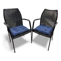 Snygga och kvalitativa fåtöljer från Brafab Sweden, en etablerad svensk tillverkare av utemöbler. Stolarna är gjorda i svart konstrotting med metallstomme och levereras med bekväma blå dynor.