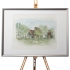 Stämningsfullt konstverk av Jan Westin, föreställande Uppsala kyrka omgiven av träd och lugnt landskap, utfört i mjuka akvarelltoner. Westin är känd för sina detaljerade och harmoniska skildringar av svenska stadsmiljöer och kyrkor, och detta motiv är ett fint exempel på hans lyriska bildspråk.