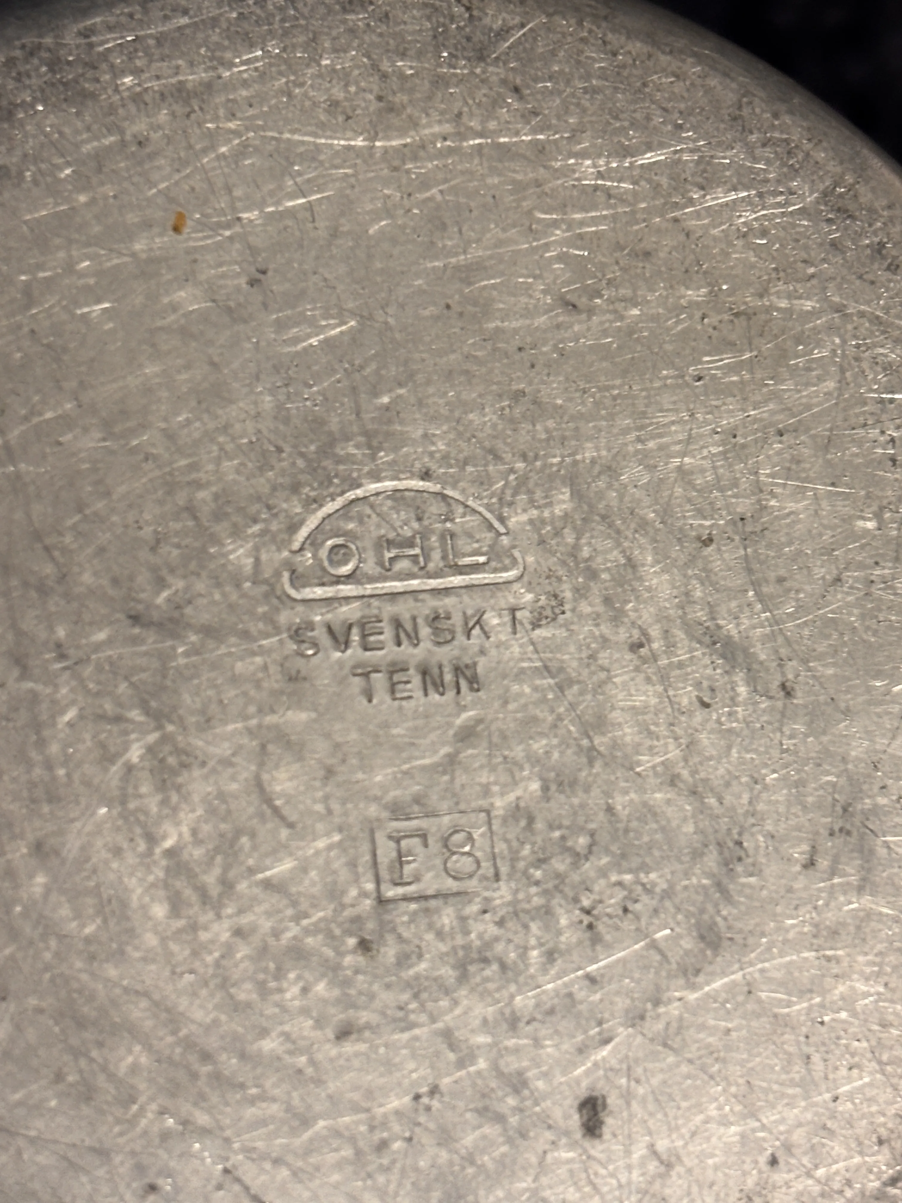 Stämplad undertill med OHL, Svenskt Tenn samt årsbokstav F8.