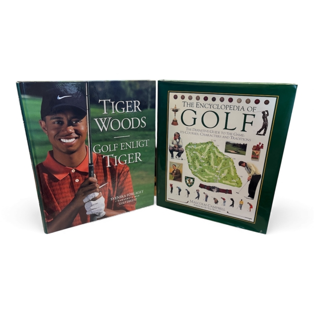 26. 2 Golfböcker – Tiger Woods Golf enligt Tiger (2001) & The Encyclopedia of Golf (DK, Malcolm Campbell)