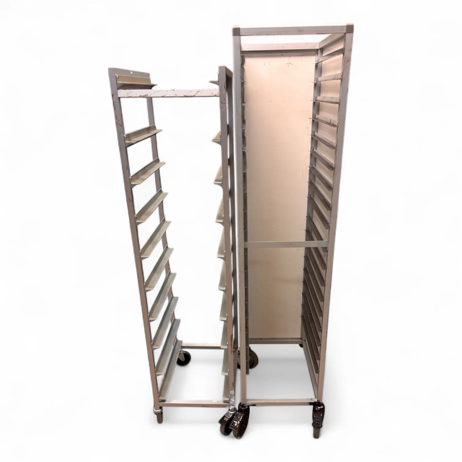25. 2 st rostfria brickvagnar på hjul / serveringsvagnar för storkök eller bageri