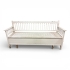 Klassisk allmogesoffa (kökssoffa) i trä med rygg- och armstöd i spjälutförande samt integrerad förvaringslåda under sitsen. Soffan är vitmålad och uppvisar ett vackert åldersslitage med patina, färgsläpp och märken som ger möbeln karaktär och autentiskt uttryck.