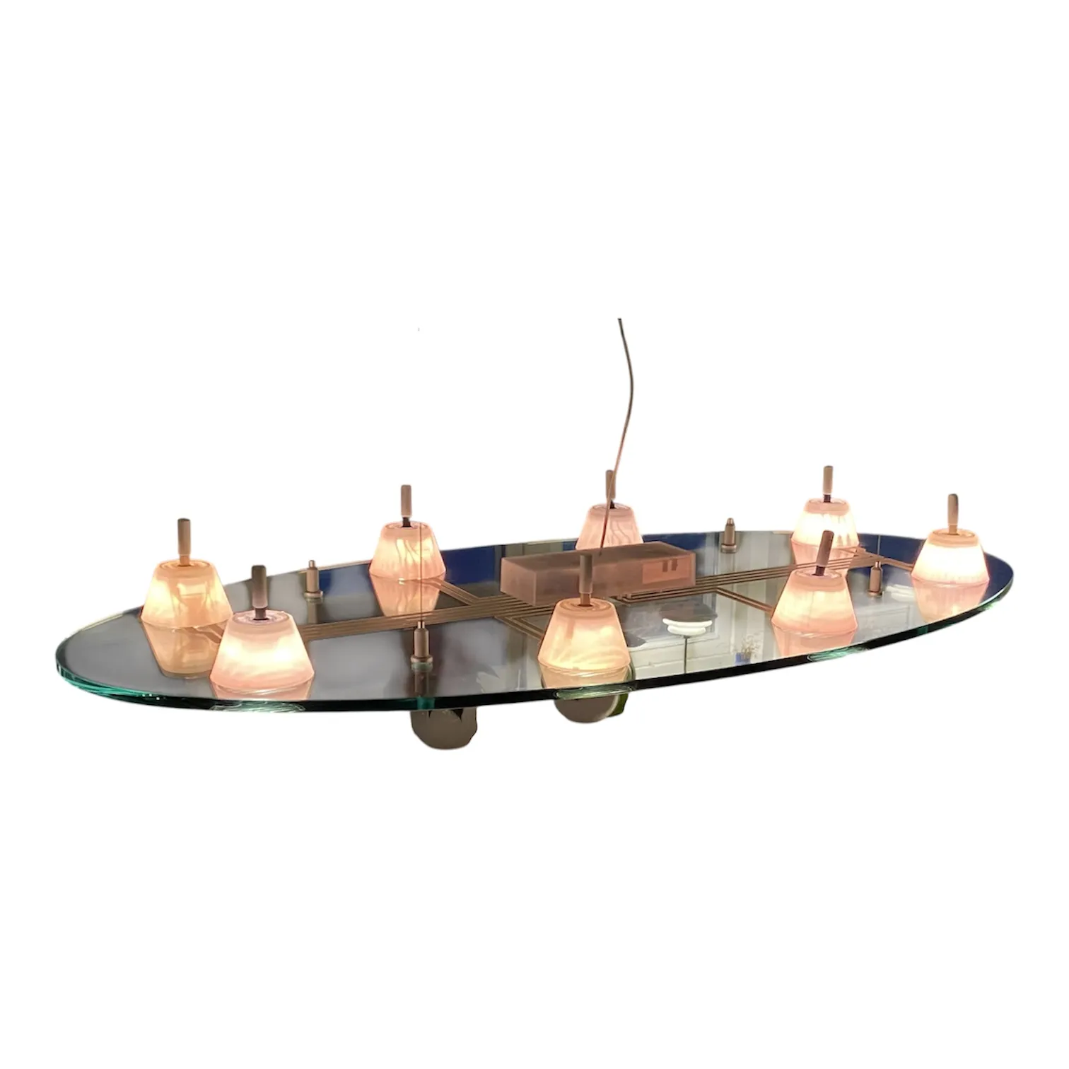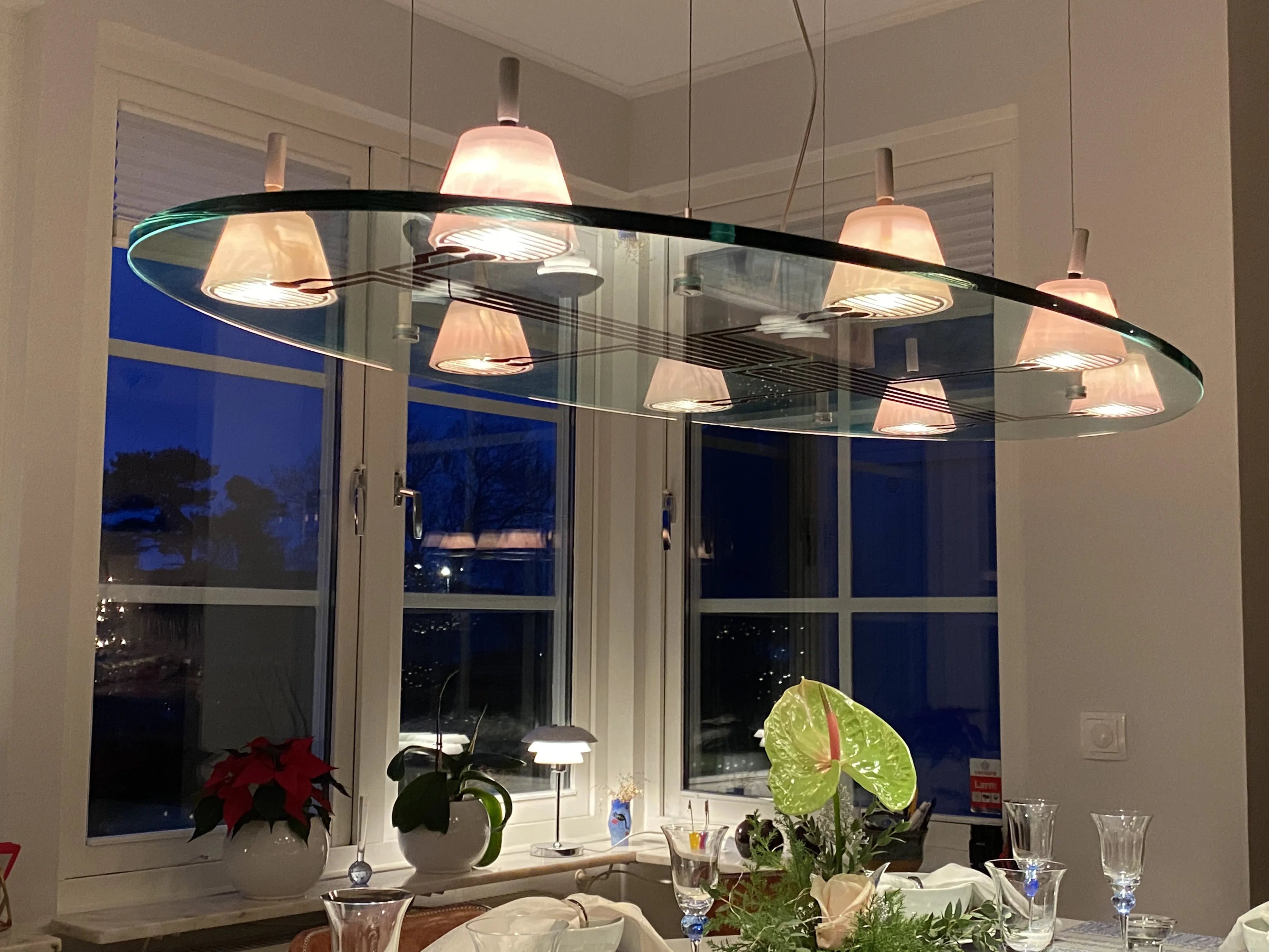 Under glasplattan sitter åtta diffusers (ljusintag/ljuskällor) som lyser nedåt.
