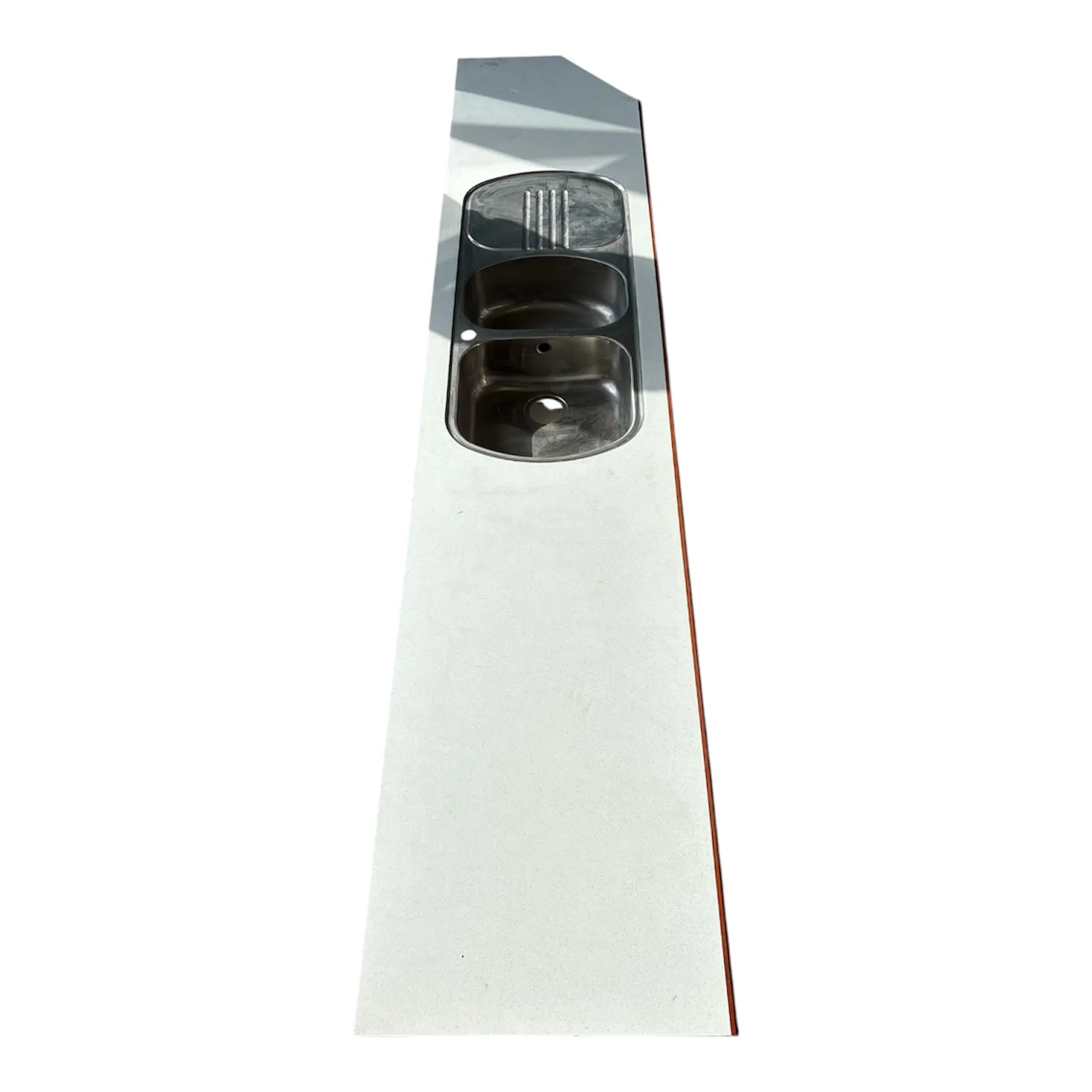 Bänkskiva med infälld dubbel diskho i rostfritt stål.