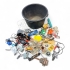 Stor balja fylld med blandade verktyg, tillbehör och småprylar – perfekt för dig som gillar att fixa, reparera eller återbruka!