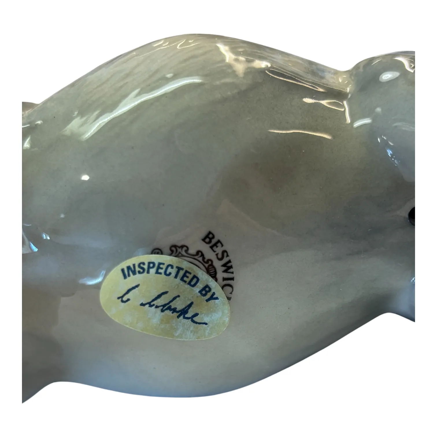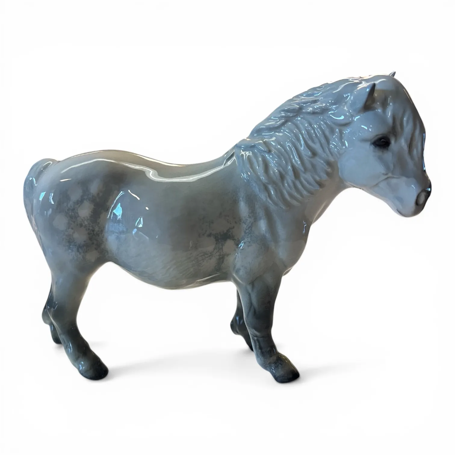 Porslinsfigur föreställande häst i grå glasyr. Tillverkad av Beswick, England.