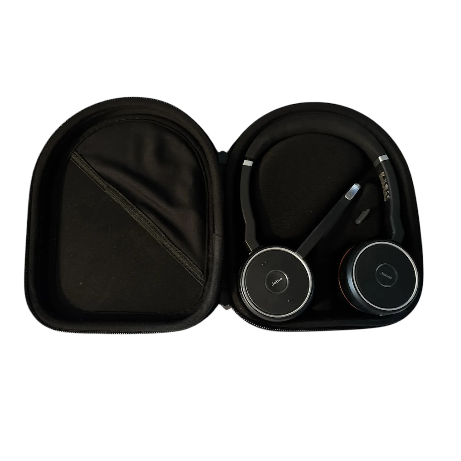 trådlöst headset Jabra Evolve 75. Headsetet är avsett för kontor och möten, men fungerar även bra för musik och samtal.