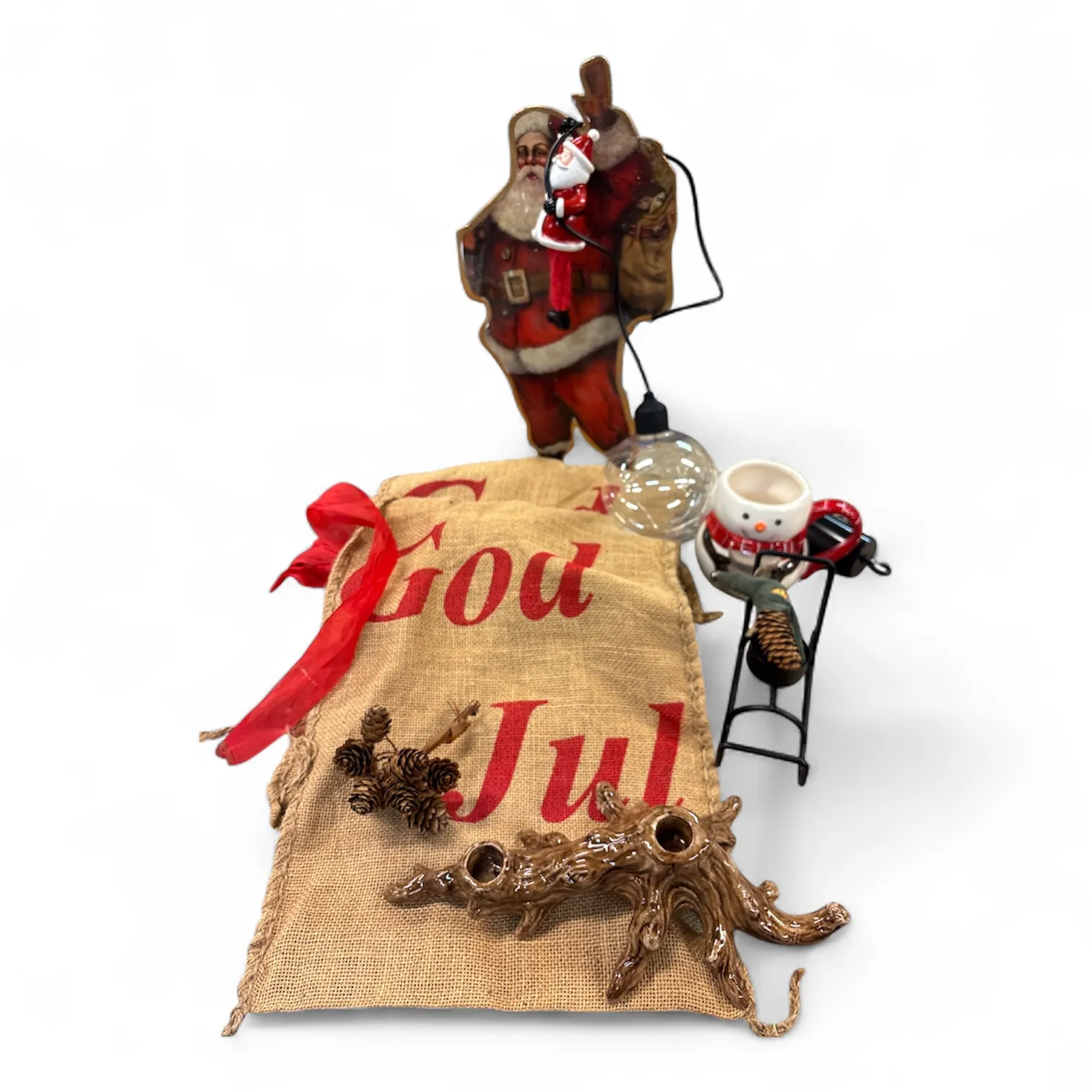 8. Julpaket – Tomtefigur, dukar, ljusstake & dekorationer