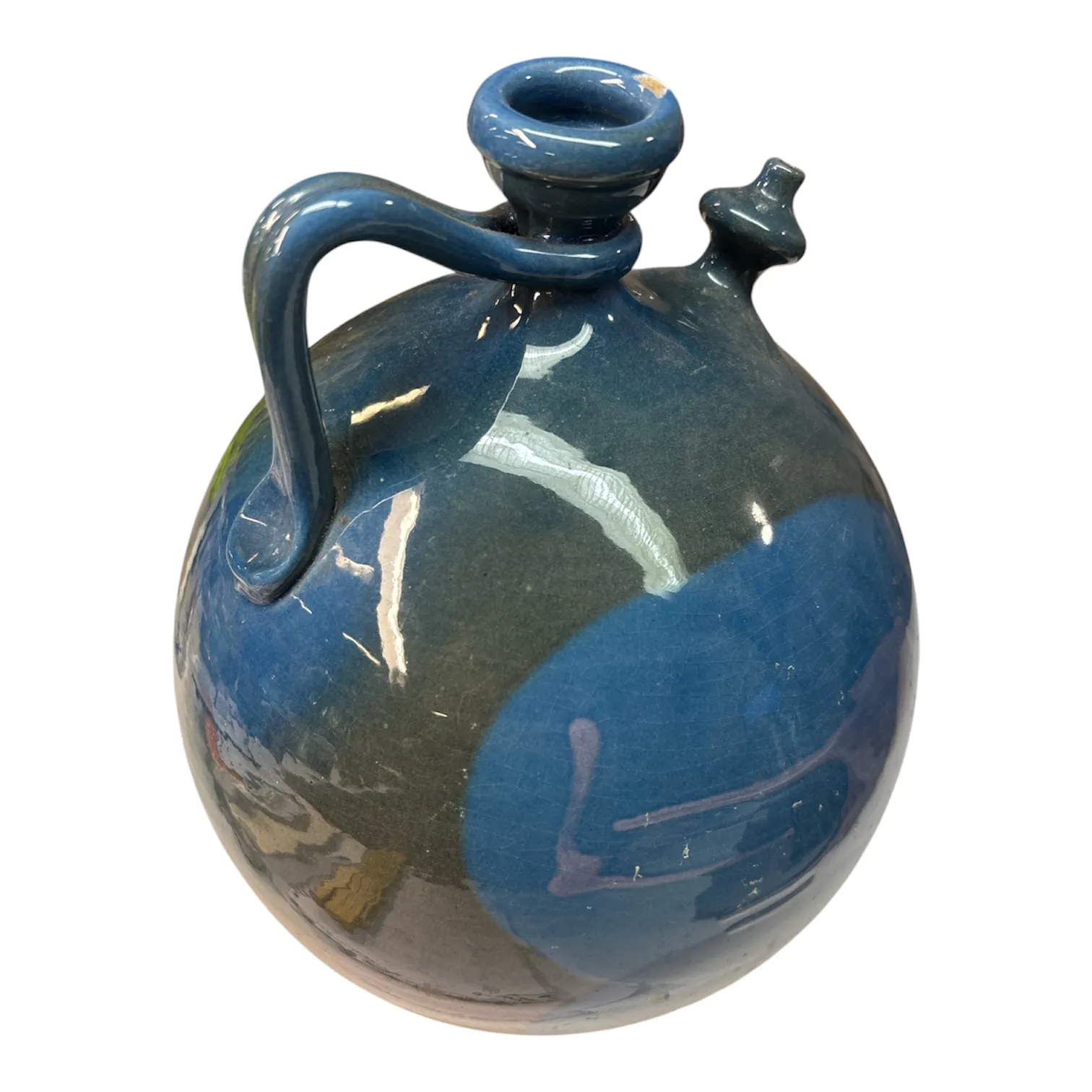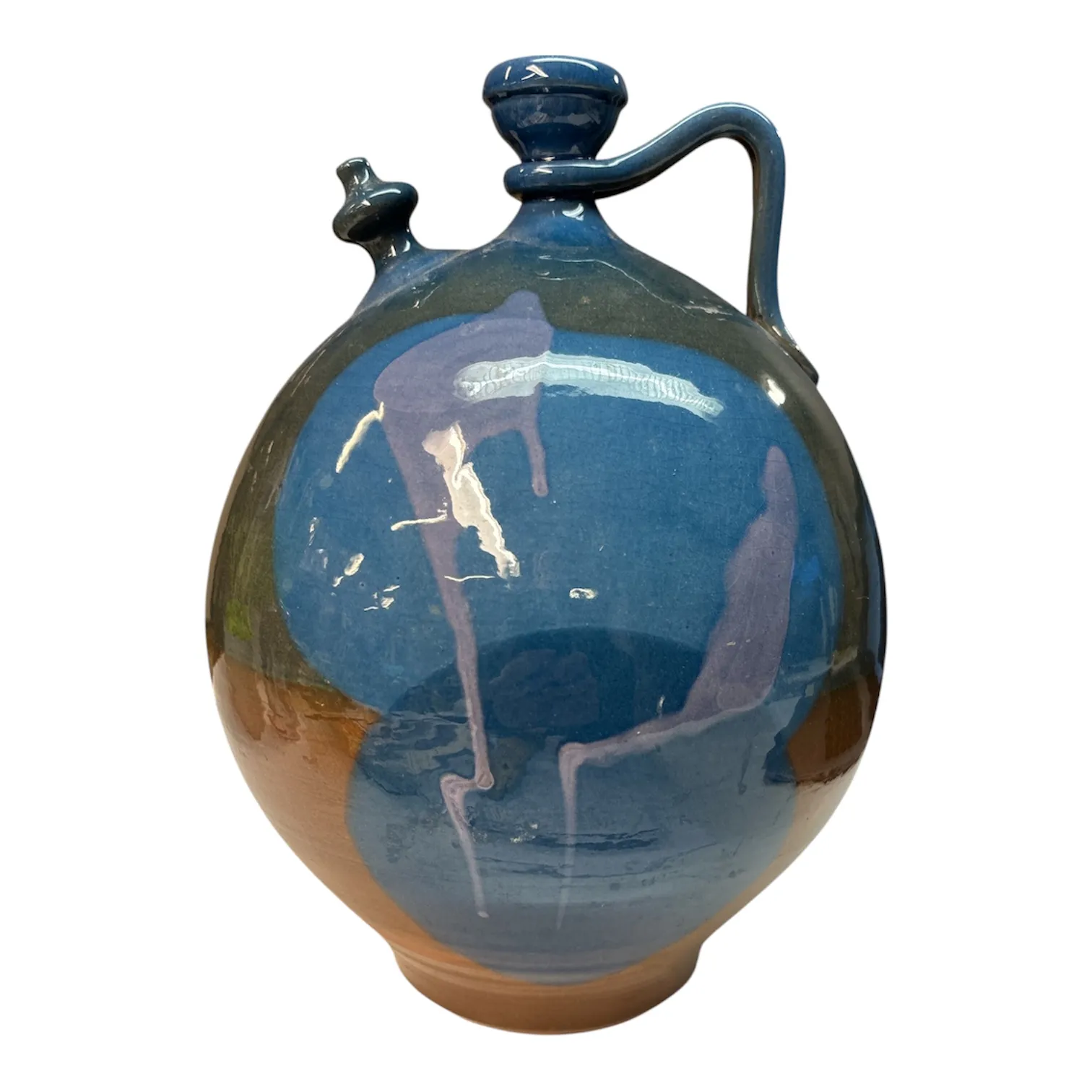 Glaserad dekor i blå, gröna och bruna toner.