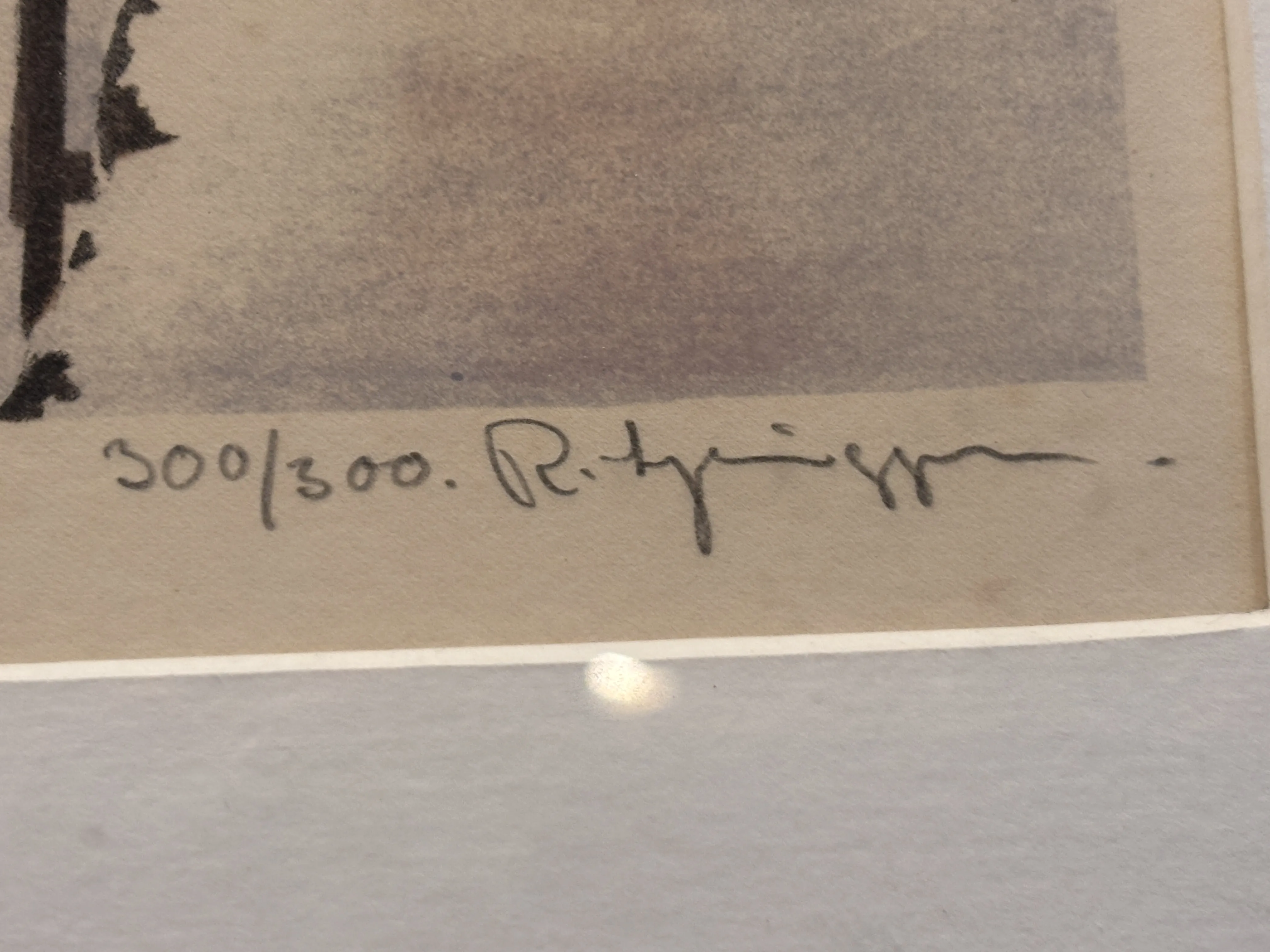 Verket är handsignerat i blyerts, titulerat och numrerat 300/300 – det sista exemplaret i upplagan. Monterat i passepartout och guldfärgad ram.