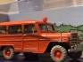 Modell föreställande brandkårens jeep (Willys-Overland Jeep Station Wagon, 1950) från albumet Solrosaffären (L’Affaire Tournesol, 1956).
