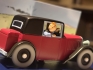 Föreställer Coupé-Spider från albumet Det sönderslagna örat (L’Oreille cassée, 1945), inspirerad av fordonstyper från 1930-talet.