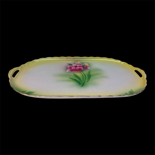 Vintage Victoria China, Czechoslovakia serveringsfat i porslin med handtag och dekorativt blommotiv.