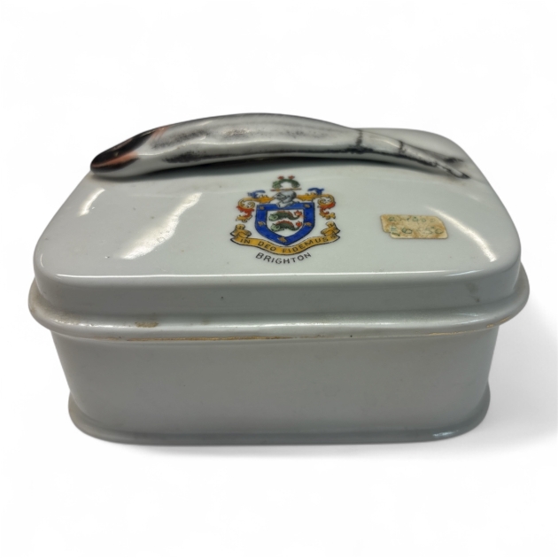 20. Victoria Czecho-Slovakia smörask / sardinkupa med fiskmotiv och Brighton-vapen, ca 1920-tal