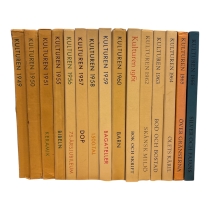 Samling med årsböcker från Kulturens Museum i Lund ur den klassiska serien “Kulturen”. Böckerna innehåller artiklar om svensk kulturhistoria, konsthantverk, arkitektur, traditioner och museiföremål.