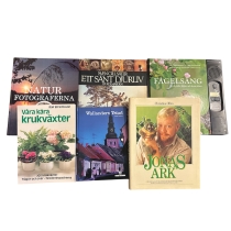 Boklot med titlar om natur, djur, fåglar, växter och svensk miljö. Passar naturintresserade eller som dekorativa faktaböcker.