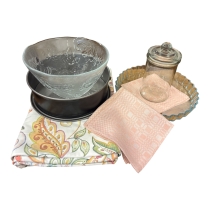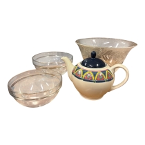 Blandat parti med glas och keramik för köket eller servering. Passar bra till retroinredning, sommarstuga