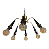 Retro taklampa med 6 armar i mässing och svart utförande.