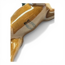Glaserade i bruna toner med ljusare ben. Dekorativa och naturtroget modellerade.