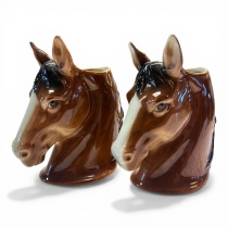 Två porslinsfigurer i form av hästhuvuden, tillverkade av Goebel, Västtyskland. Märkta undertill W. Goebel 1956 samt modellbeteckning VT 22.