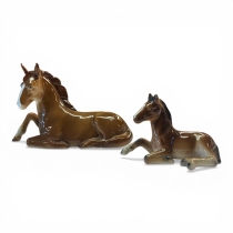 Keramisk figurgrupp föreställande sto och föl på bas. Märkt undertill med präglad stämpel “Holland”.