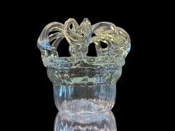 Dekorativ brudkrona i glas, även kallad “Bride’s Bank”. Enligt tradition använd vid bröllop där gäster placerade pengar i öppningarna upptill. Vackert utformad med slingrande glasdetaljer.